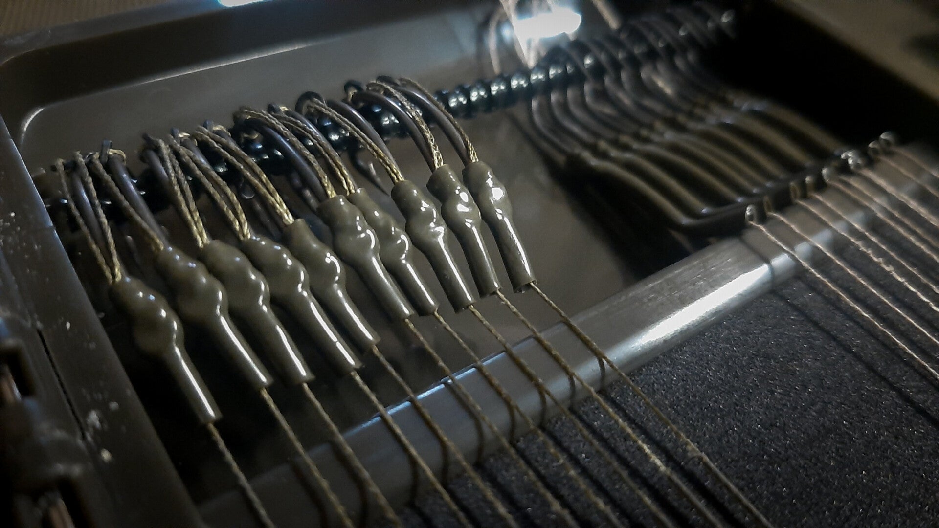 Gevulde rigbox met verschillende rigs voor wafter, popup en bodemaas presentatie.